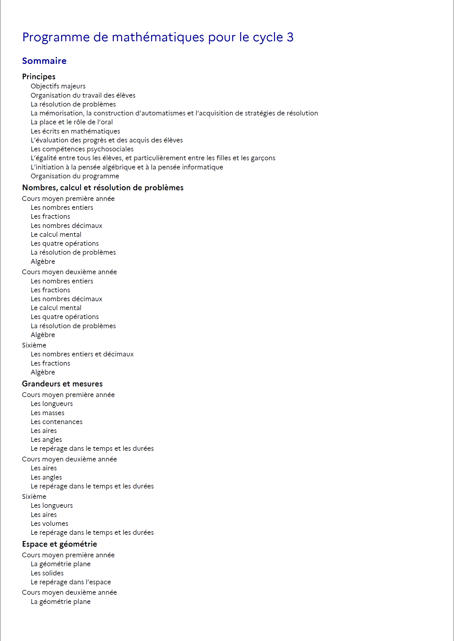 Extrait des programmes 2025 de mathématiques - CM1, CM2 et sixième
