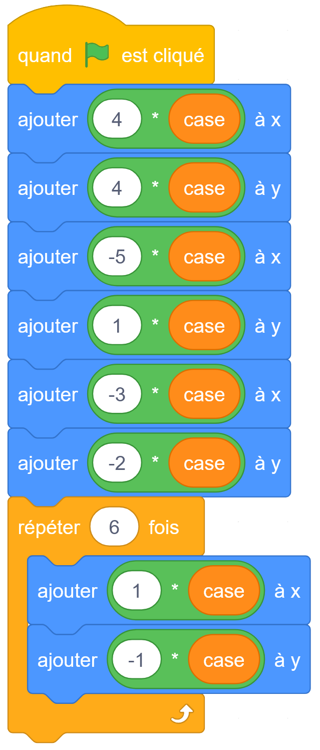 \[\begin{aligned} chaises pour étape (e) &= chaises pour étape (e-1) + 6 - 2 \\