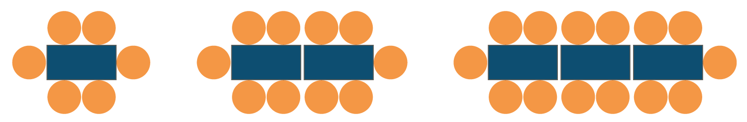\[\begin{aligned} chaises de(n tables) = (n tables) \times 4 + 2 \end{aligned} \]