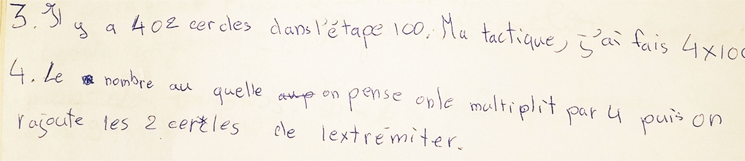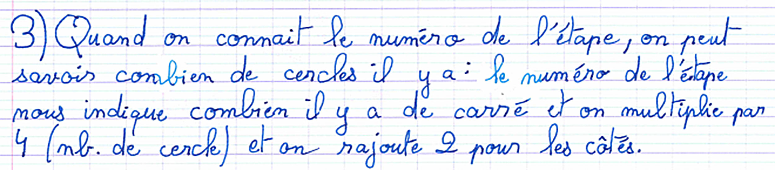 - Expliquer comment on peut trouver le nombre de cercles, connaissant le numéro de l'étape.
